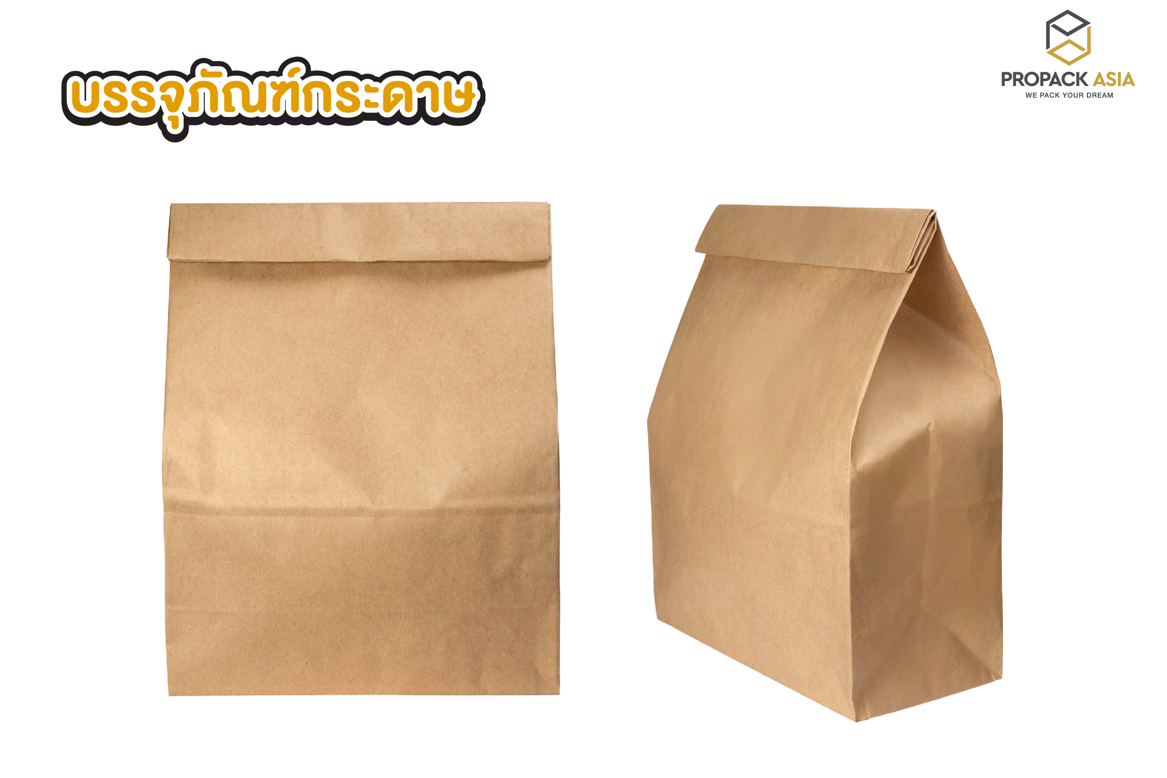 สำหรับกล่องบรรจุภัณฑ์กระดาษจะทำมาจากเยื่อกระดาษชนิดต่าง ๆ โดยแต่ละชนิดจะมีคุณสมบัติต่างกันออกไป หลัก ๆ แล้วจะย่อยสลายได้ ไม่ค่อยเป็นพิษเป็นภัยกับสิ่งแวดล้อม เช่น แก้วกระดาษใส่กาแฟ หรือน้ำดื่ม, ถุงกระดาษใส่ของ, กระดาษห่อขนมหรืออาหาร, ถ้วยกระดาษ กล่องพิซซ่า ฯลฯ